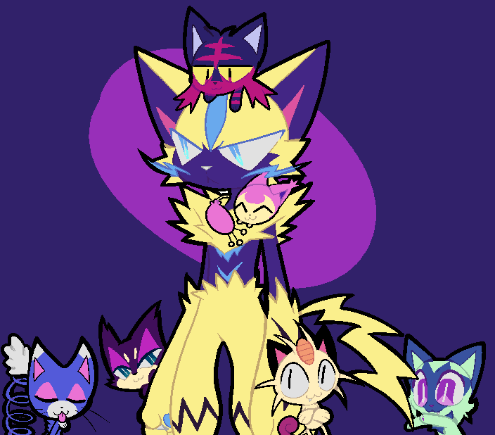 i love cats, i love pokemon, so i drew cat pokemon:3 i wish zeraora was in pokemon violet jghghdefihfidh